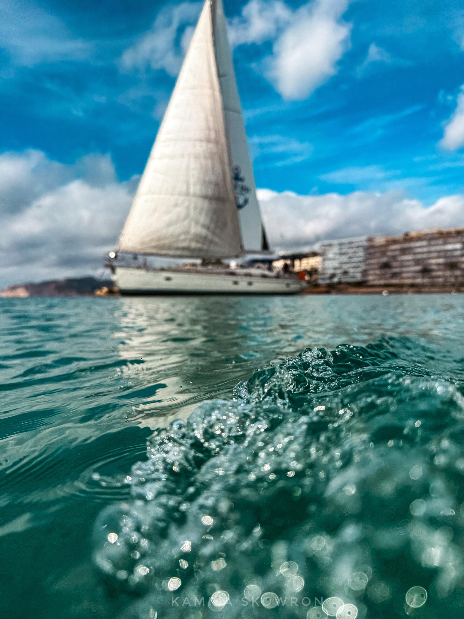Rejs zaczął się spokojnie, z lekkim, południowo-wschodnim wiatrem, który bez problemu napełniał nasze żagle. Po chwili mijaliśmy wyspę Tabarca, której skaliste brzegi i wody pełne wiosłujących łodzi przypominały nam, jak blisko jesteśmy dzikiej, morskiej natury. Na lewej burcie zaś pojawił się Benidorm, z jego wielkimi wieżowcami, które wyłaniały się zza horyzontu jak naścielone monolity, aż trudno było uwierzyć, że to nie jakiś futurystyczny film, a po prostu wybrzeże Hiszpanii.