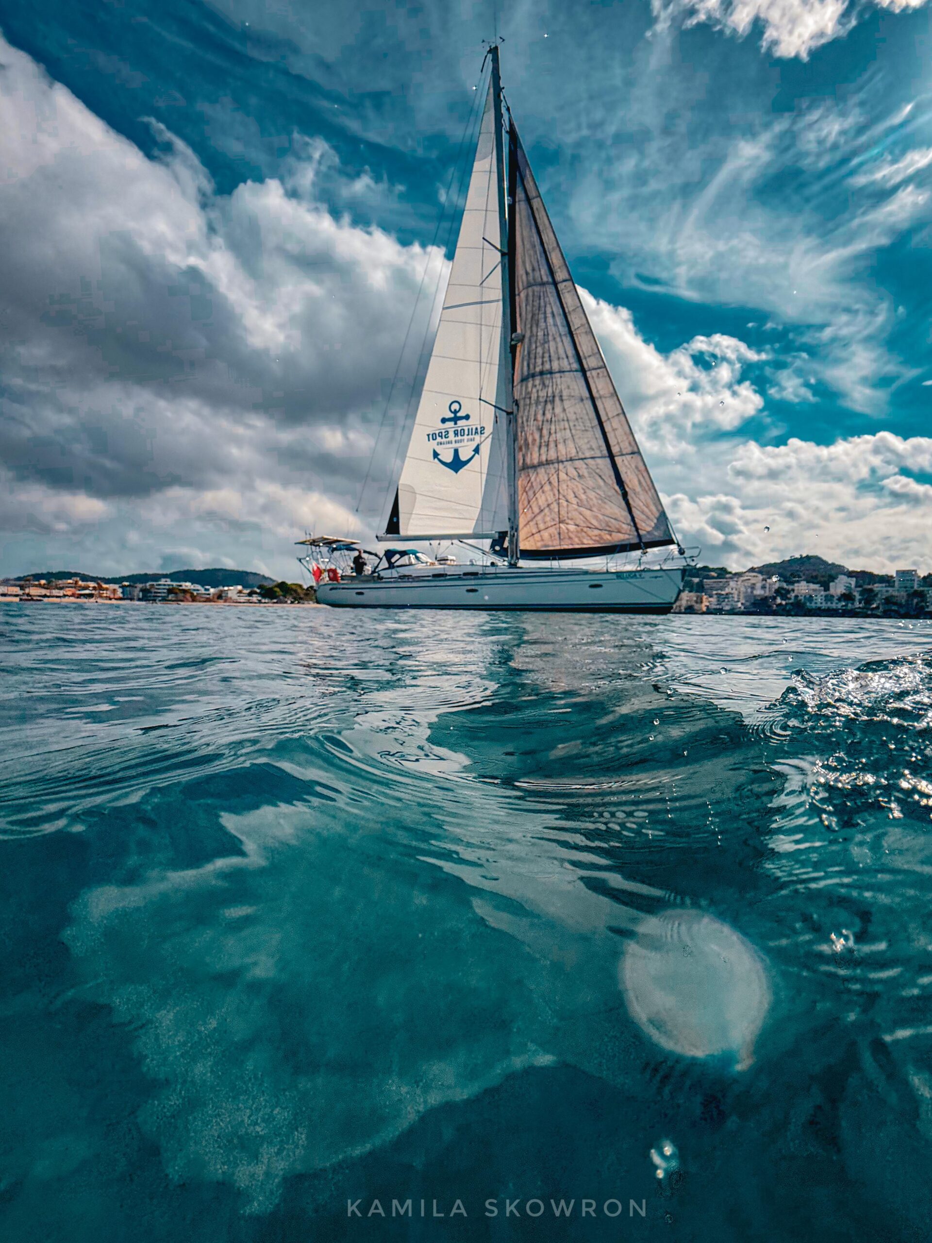 Po popołudniowej kąpieli podnieśliśmy kotwicę, udając się w stronę kolejnej zatoki. W Santa Ponca wypełniliśmy zapasy i zaczęliśmy naszą tradycyjną, żeglarską sesję zdjęciową – logo Sailor Spot lśniło dumnie na tle intensywnie błękitnej wody. Żeglowaliśmy dalej, a wieczorem czekała nas biesiada przy kartach. Kris tym razem rządził w kambuzie, serwując ziemniaki, kotlety wegańskie i rybne – menu zrównoważone, jak to przystało na prawdziwych żeglarzy.
